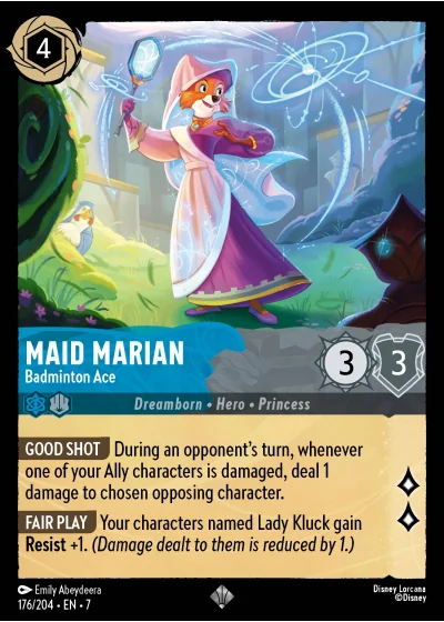 GOOD SHOT During an opponent's turn, whenever one of your Ally characters is damaged, deal 1 damage to chosen opposing character.