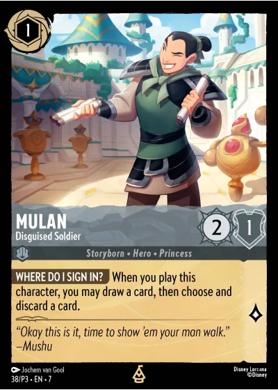 WHERE DO I SIGN IN? When you play this character, you may draw a card, then choose and discard a card.