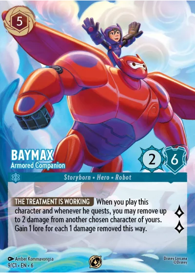 THE TREATMENT IS WORKING When you play this character and whenever he quests, you may remove up to 2 damage from another chosen character of yours. Gain 1 lore for each 1 damage removed this way.
