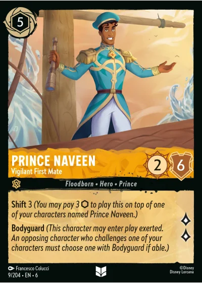 Shift 3 (You may pay 3 ⬡ to play this on top of one of your characters named Prince Naveen.)
