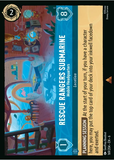 PLANNING SESSION At the start of your turn, if you have a character here, you may put the top card of your deck into your inkwell facedown and exerted.
