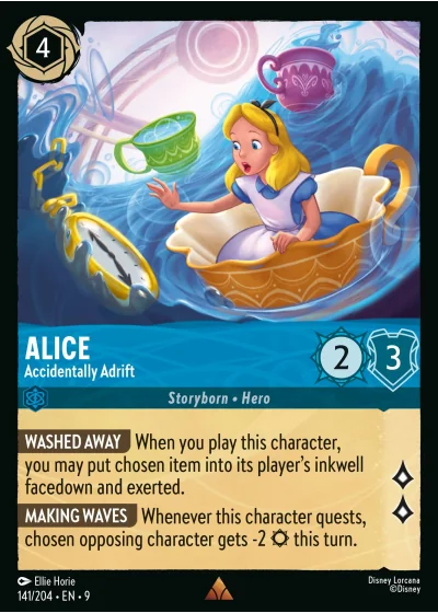 WASHED AWAY When you play this character, you may put chosen item into its player's inkwell facedown and exerted.