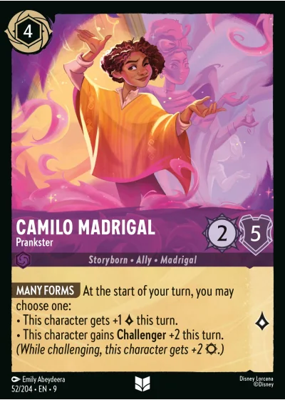 MANY FORMS At the start of your turn, you may choose one: • This character gets +1 ◊ this turn. • This character gains Challenger +2 this turn. (While challenging, this character gets +2 ¤.)