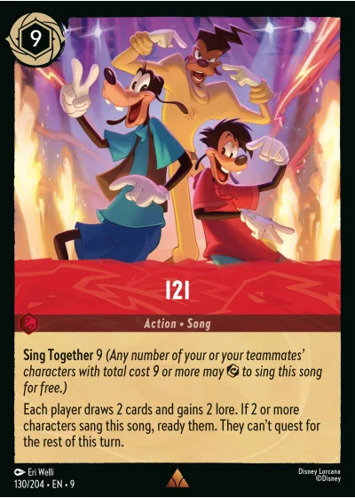 Sing Together 9 (Any number of your or your teammates' characters with total cost 9 or more may ⟳ to sing this song for free.)