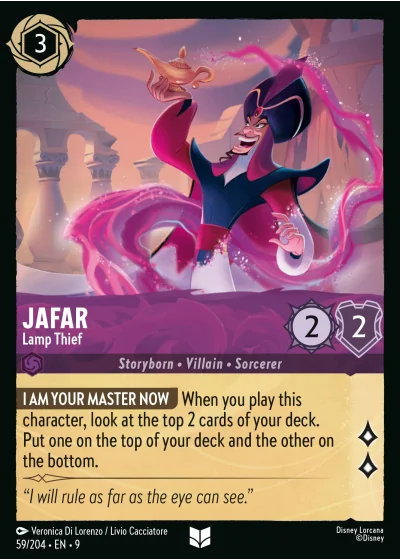 I AM YOUR MASTER NOW When you play this character, look at the top 2 cards of your deck. Put one on the top of your deck and the other on the bottom.