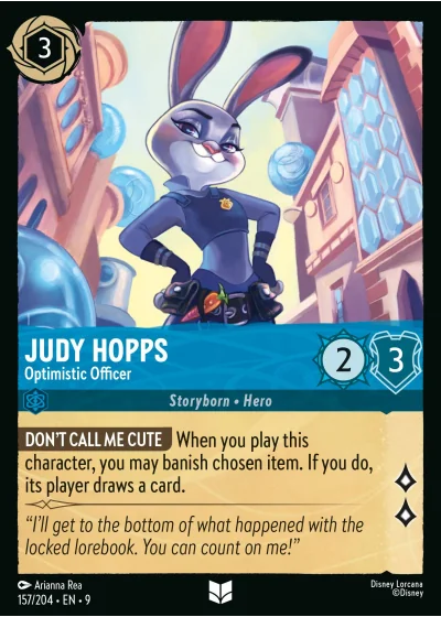 DON'T CALL ME CUTE When you play this character, you may banish chosen item. If you do, its player draws a card.