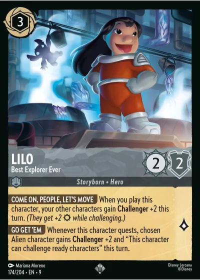 COME ON, PEOPLE, LET'S MOVE When you play this character, your other characters gain Challenger +2 this turn. (They get +2 ¤ while challenging.)