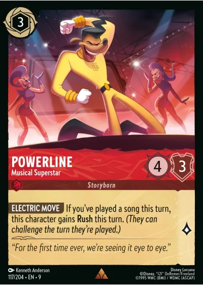ELECTRIC MOVE If you've played a song this turn, this character gains Rush this turn. (They can challenge the turn they're played.)