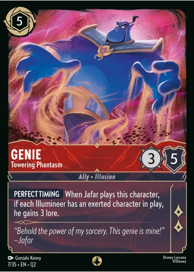 PERFECT TIMING When Jafar plays this character, if each Illumineer has an exerted character in play, he gains 3 lore.