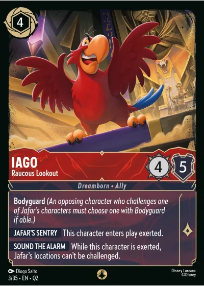 Bodyguard (An opposing character who challenges one of Jafar's characters must choose one with Bodyguard if able.)
