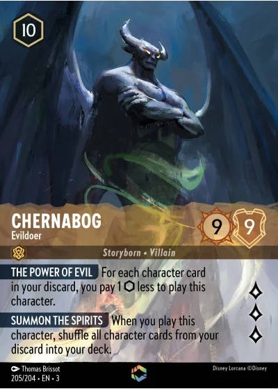 THE POWER OF EVIL For each character card in your discard, you pay 1 ⬡ less to play this character.