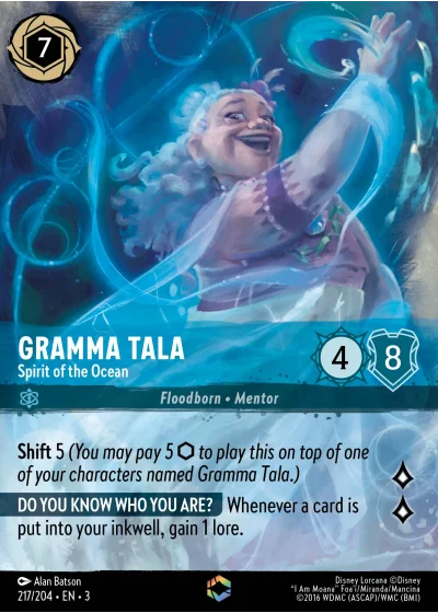 Shift 5 (You may pay 5 ⬡ to play this on top of one of your characters named Gramma Tala.)