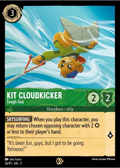 SKYSURFING When you play this character, you may return chosen opposing character with 2 ¤ or less to their player's hand.