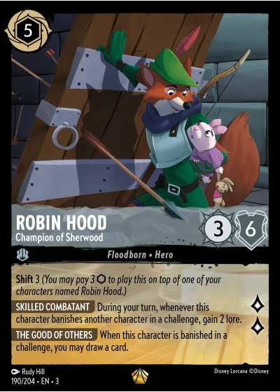 Shift 3 (You may pay 3 ⬡ to play this on top of one of your characters named Robin Hood.)