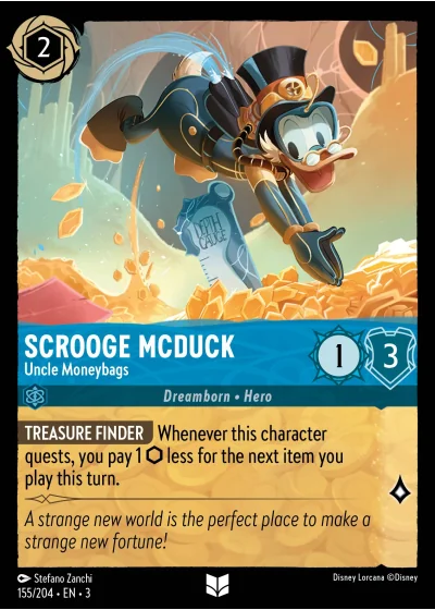 TREASURE FINDER Whenever this character quests, you pay 1 ⬡ less for the next item you play this turn.