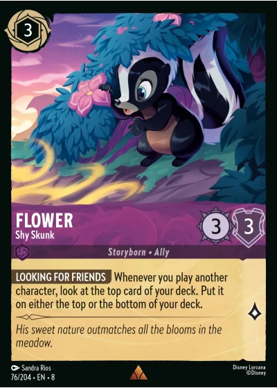 LOOKING FOR FRIENDS Whenever you play another character, look at the top card of your deck. Put it on either the top or the bottom of your deck.