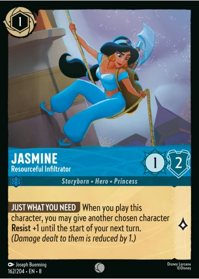 JUST WHAT YOU NEED When you play this character, you may give another chosen character Resist +1 until the start of your next turn. (Damage dealt to them is reduced by 1.)