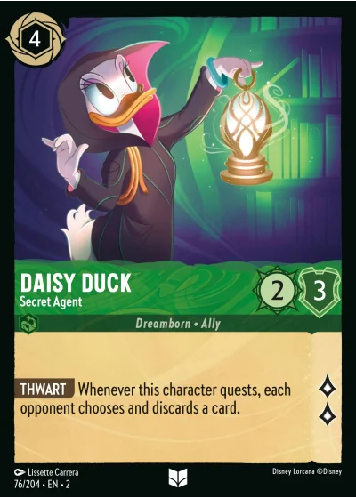 THWART Whenever this character quests, each opponent chooses and discards a card.