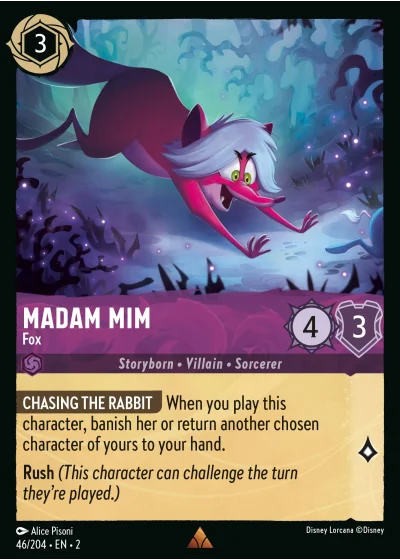 CHASING THE RABBIT When you play this character, banish her or return another chosen character of yours to your hand.