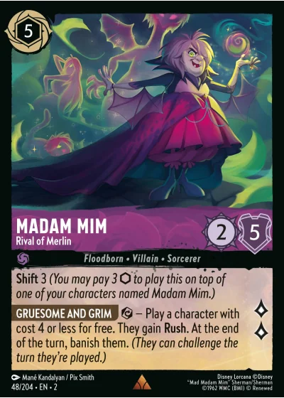 Shift 3 (You may pay 3 ⬡ to play this on top of one of your characters named Madam Mim.)