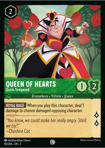 ROYAL RAGE When you play this character, deal 1 damage to chosen damaged opposing character.
