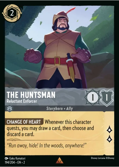 CHANGE OF HEART Whenever this character quests, you may draw a card, then choose and discard a card.