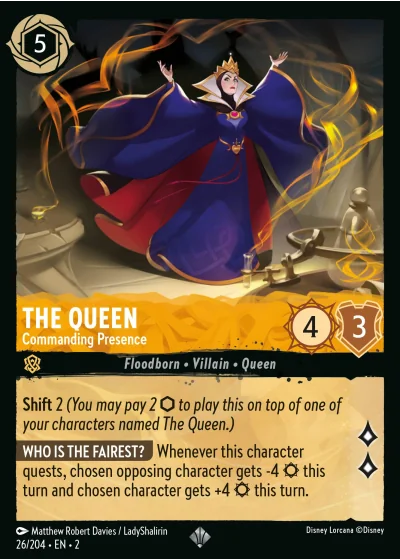 Shift 2 (You may pay 2 ⬡ to play this on top of one of your characters named The Queen.)