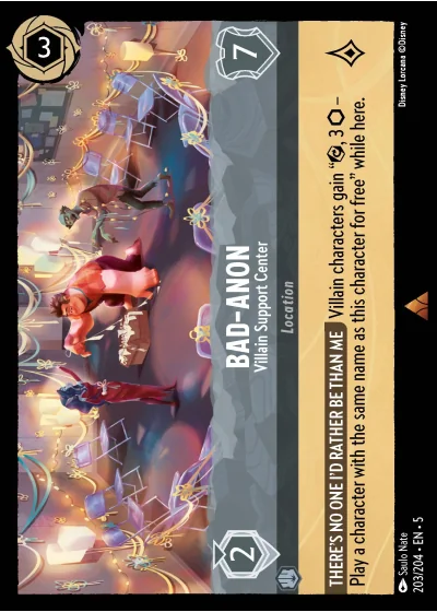 THERE'S NO ONE I'D RATHER BE THAN ME Villain characters gain “⟳, 3 ⬡ — Play a character with the same name as this character for free” while here.