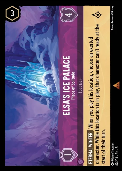 ETERNAL WINTER When you play this location, choose an exerted character. While this location is in play, that character can't ready at the start of their turn.