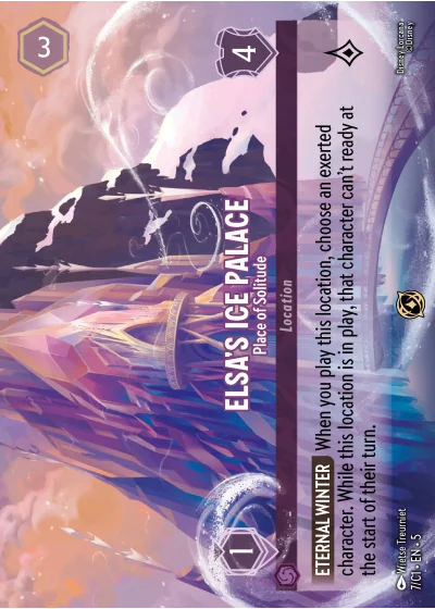 ETERNAL WINTER When you play this location, choose an exerted character. While this location is in play, that character can't ready at the start of their turn.