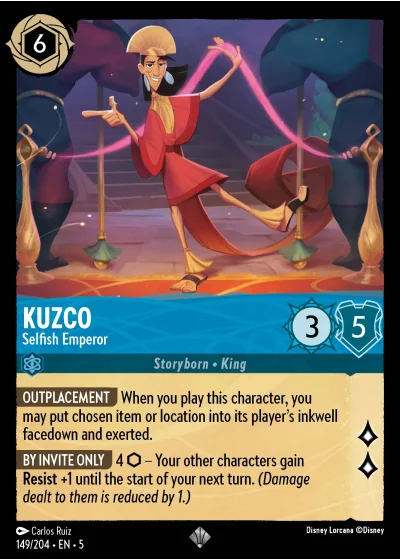 OUTPLACEMENT When you play this character, you may put chosen item or location into its player's inkwell facedown and exerted.
