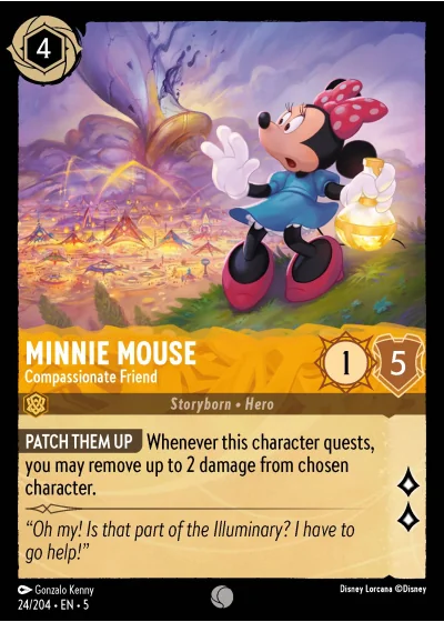 PATCH THEM UP Whenever this character quests, you may remove up to 2 damage from chosen character.