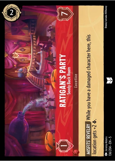 MISFITS' REVELRY While you have a damaged character here, this location gets +2 ◊.