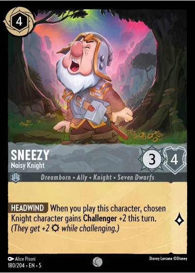 HEADWIND When you play this character, chosen Knight character gains Challenger +2 this turn. (They get +2 ¤ while challenging.)
