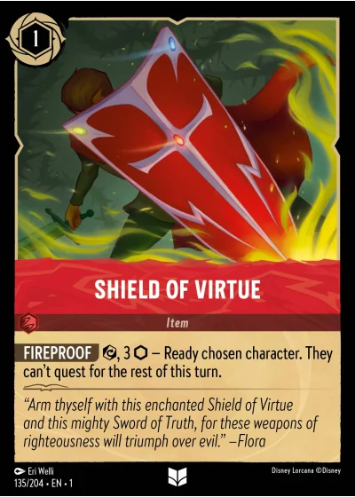 FIREPROOF ⟳, 3 ⬡ — Ready chosen character. They can't quest for the rest of this turn.