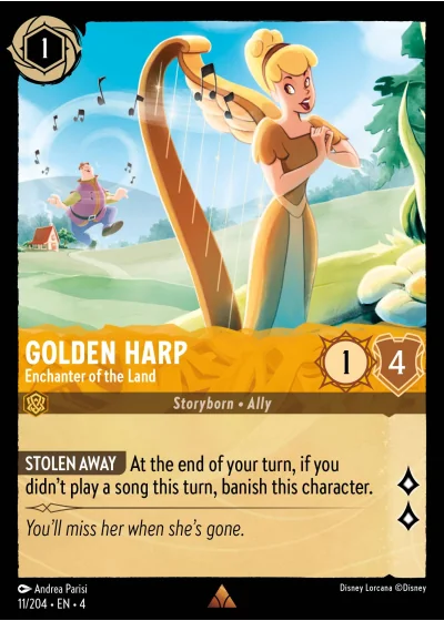 STOLEN AWAY At the end of your turn, if you didn't play a song this turn, banish this character.