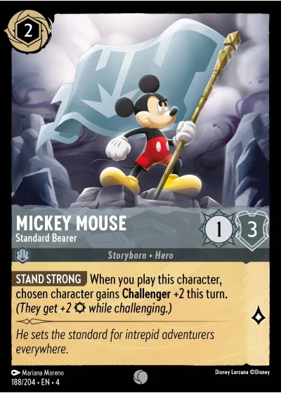 STAND STRONG When you play this character, chosen character gains Challenger +2 this turn. (They get +2 ¤ while challenging.)