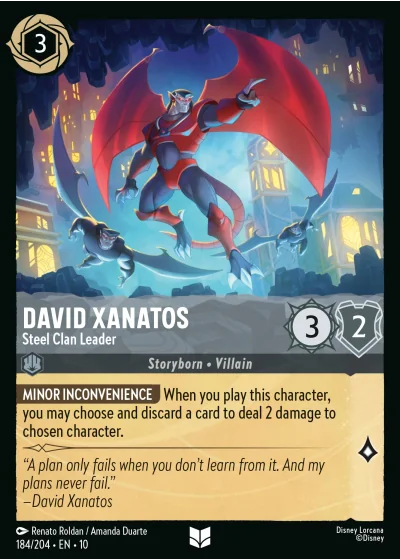 MINOR INCONVENIENCE When you play this character, you may choose and discard a card to deal 2 damage to chosen character.