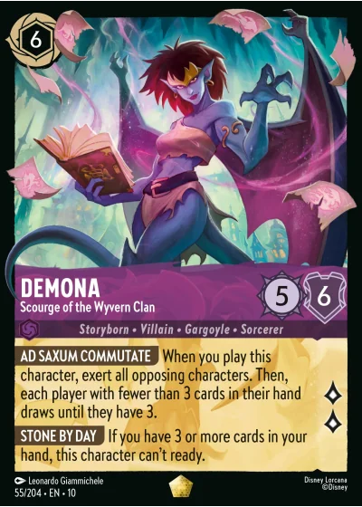 AD SAXUM COMMUTATE When you play this character, exert all opposing characters. Then, each player with fewer than 3 cards in their hand draws until they have 3.