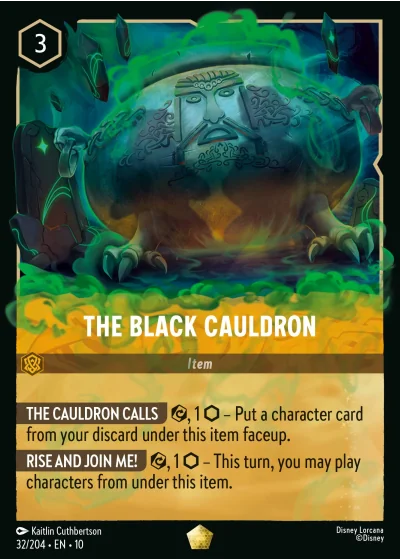 THE CAULDRON CALLS ⟳, 1 ⬡ — Put a character card from your discard under this item faceup.