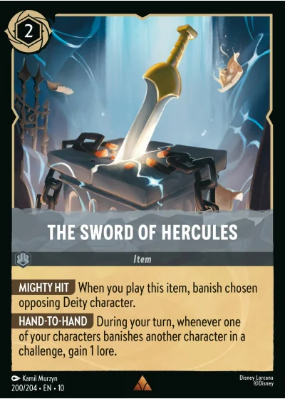 MIGHTY HIT When you play this item, banish chosen opposing Deity character.