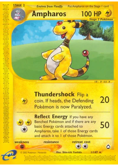 If you have any Benched Pokémon and if there are any basic Energy cards attached to Ampharos, take 1 of those Energy cards and attach it to 1 of those Pokémon.