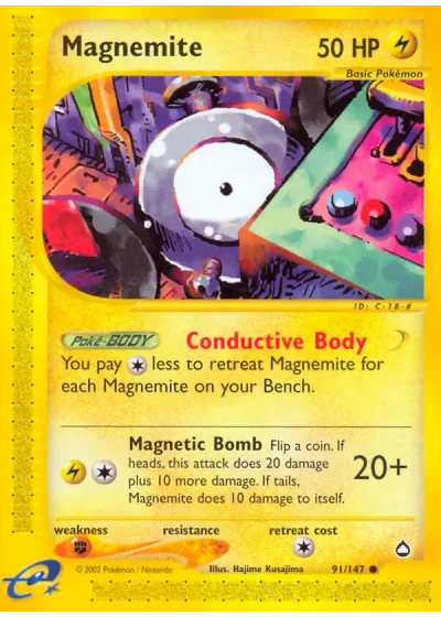 Flip a coin. If heads, this attack does 20 damage plus 10 more damage. If tails, Magnemite does 10 damage to itself.