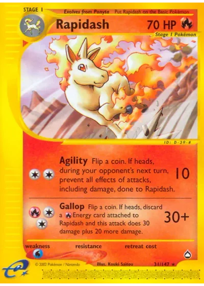 Flip a coin. If heads, during your opponent's next turn, prevent all effects of attacks, including damage, done to Rapidash.