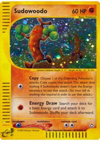 Choose 1 of the Defending Pokémon's attacks. Copy copies that attack. This attack does nothing if Sudowoodo doesn't have the Energy necessary to use that attack. (You must still do anything else required in order to use that attack.)