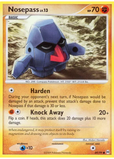 During your opponent's next turn, if Nosepass would be damaged by an attack, prevent that attack's damage done to Nosepass if that damage is 30 or less.