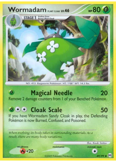If you have Wormadam Sandy Cloak in play, the Defending Pokémon is now Burned, Confused, and Poisoned.