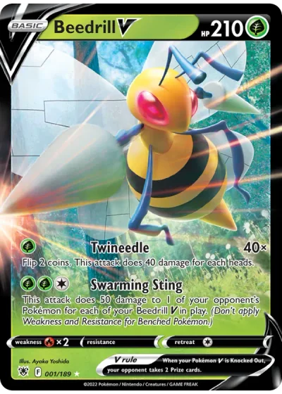 This attack does 50 damage to 1 of your opponent's Pokémon for each of your Beedrill V in play. (Don't apply Weakness and Resistance for Benched Pokémon.)