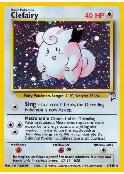 Choose 1 of Defending Pokémon's attacks. Metronome copies that attack except for its Energy costs and anything else required in order to use that attack, such as discarding energy cards. (No matter what type the defender is, Clefairy's type is still Colorless.)