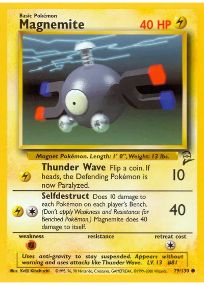 Does 10 damage to each Pokémon on each player's Bench. (Don't apply Weakness and Resistance for Benched Pokémon.) Magnemite does 40 damage to itself.